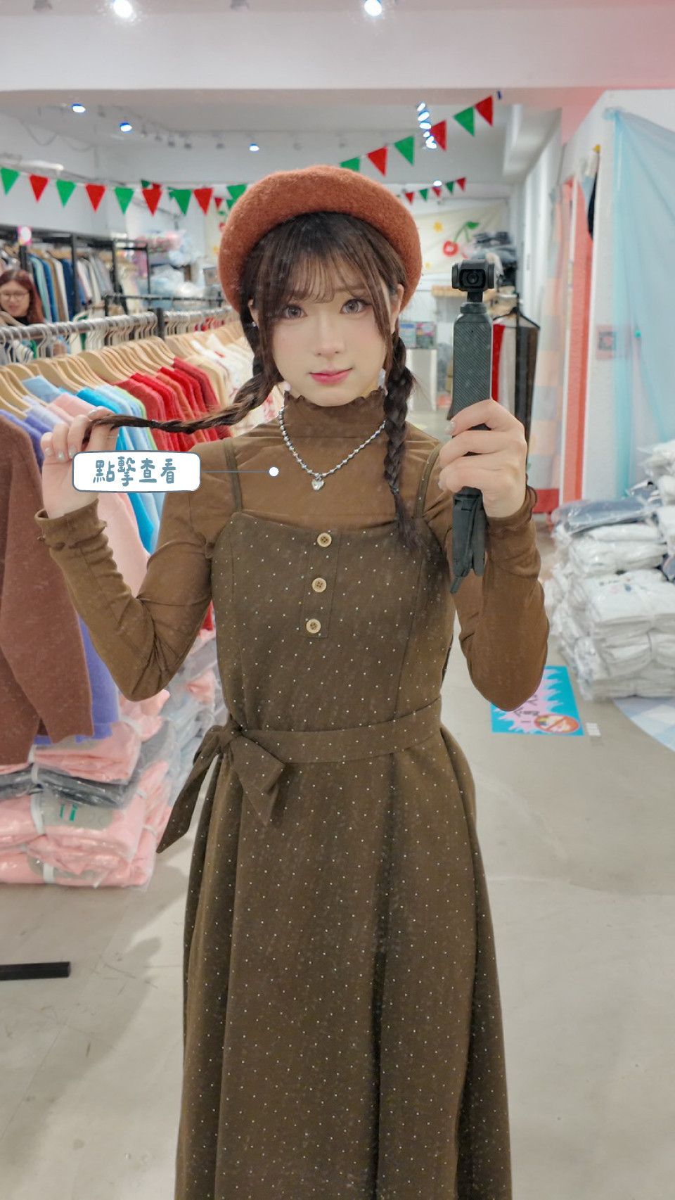 細肩圓釦點點長裙 (冬),酒叩桃子JOCOMOMO 一中街服飾品牌