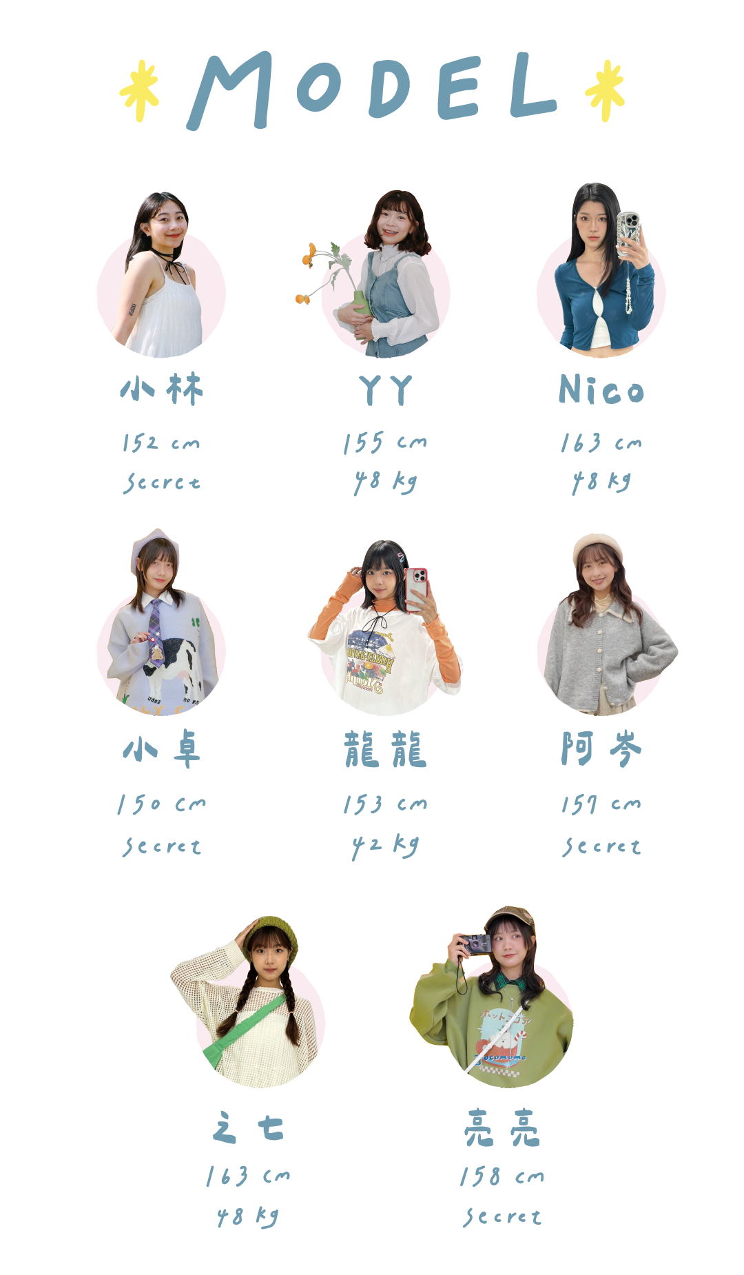 - 模特尺寸如附圖